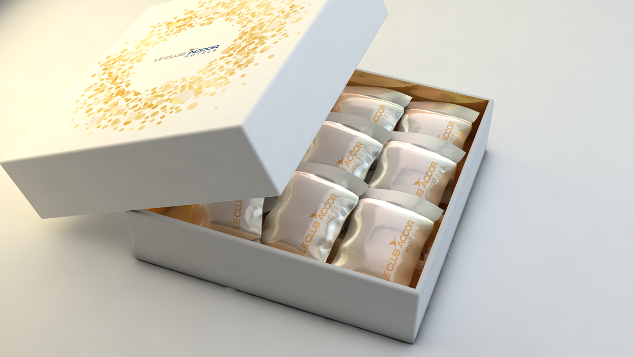 Identidade visual para brindes oferecidos aos clientes Accor Hotels.